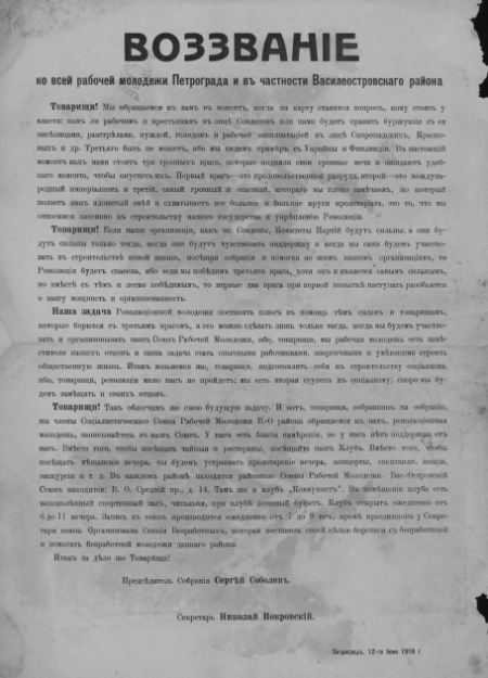 - Петроградская (Ленинградская) организация Российского Коммунистического Союза Молодежи (РКСМ), Петроградский комитет Социалистического союза рабочей молодежи] (1)