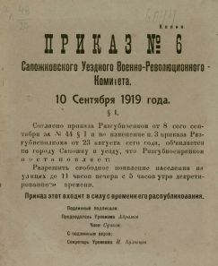 - Сапожковский уездный Совет рабочих и крестьянских депутатов Исполнительный комитет Заседание 1919, сентябрь (1)