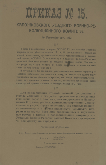 - Сапожковский уездный Совет рабочих и крестьянских депутатов Исполнительный комитет Президиум (1)