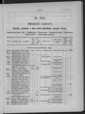 КнигаИменной список убитым, раненым и без вести пропавшим нижним чинам, [1914-1917]. № 166, Саратовская губ., Семипалатинская обл., Симбирская, Смоленская, Сувалкская, Таврическая, Тамбовская, Тверская, Тифлисская и Черниговская губернии[191-?]Наличие: