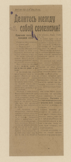 Делитесь между собой семенами! : листовка Цар. губ. отд. Роста / [Российское телеграфное агентство, Царицынское губ. отделение]