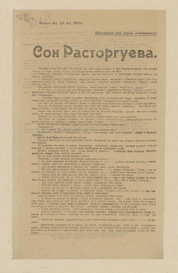 Сон Расторгуева : листовка Цар. губ. отд. Роста / [Российское телеграфное агентство, Царицынское губ. отделение]