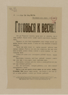 Готовься к весне! : листовка Цар. губ. отд. Роста / [Российское телеграфное агентство, Царицынское губ. отделение]