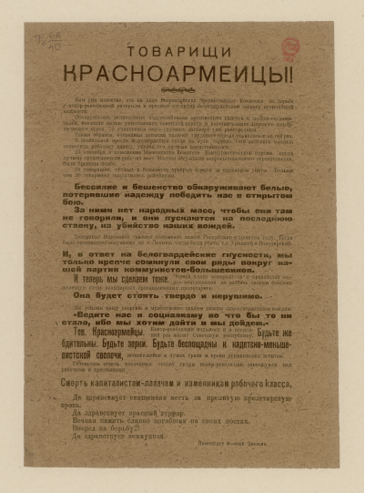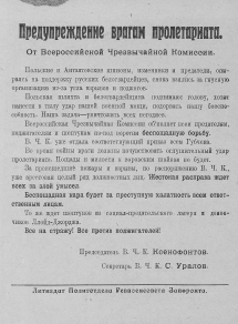 КнигаПредупреждение врагам пролетариата от Всероссийской чрезвычайной комиссии : [листовка][1920]Наличие: Экземпляры доступные для заказа: РНБ (Садовая)Шифр хранения: ФЛ 11/159 (1).