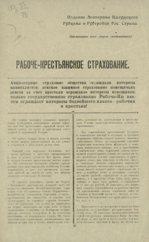 Рабоче-крестьянское страхование : [листовка / Агитационно-пропагандистский отдел]