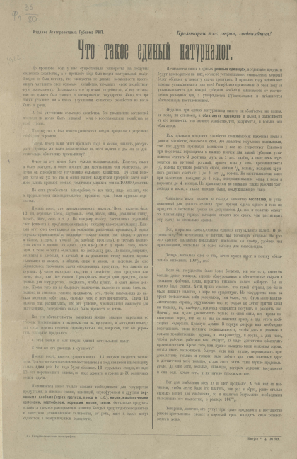 Что такое единый натурналог : [листовка / Агитационно-пропагандистский отдел]