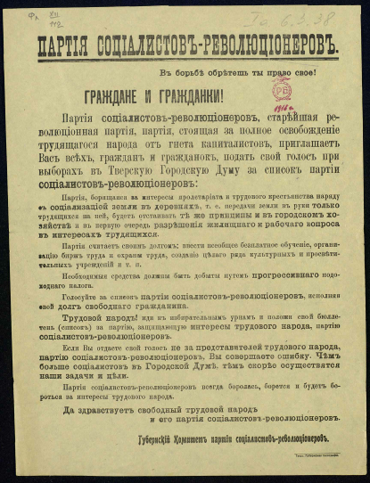- Тверской Губернский Совет Крестьянских Депутатов и Тверской Губернский Комитет Партии Социалистов-Революционеров (1)