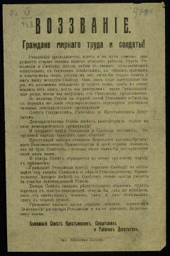 КнигаВоззвание. [О роли Советов в борьбе с контрреволюцией : листовка][1918]Наличие: Экземпляры доступные для заказа: РНБ (Садовая)Шифр хранения: ФЛ 25/158 (1).