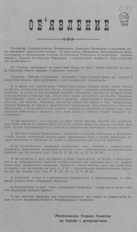 - Меленковская уезд. комиссия по борьбе с дезертирством] (1)