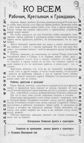 КнигаИнструкция по сбору, учету и распределению собранного в "Неделю фронта" : [листовка][1920, янв.]Наличие: Экземпляры доступные для заказа: РНБ (Садовая)Шифр хранения: ФЛ 11/25 (1).