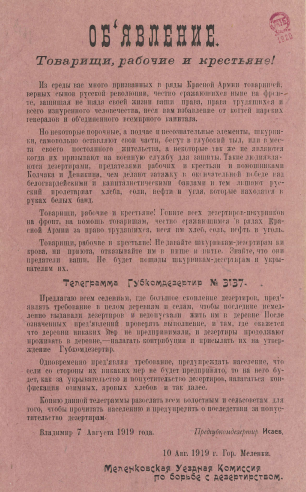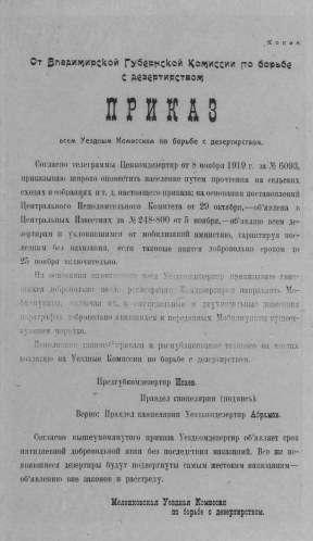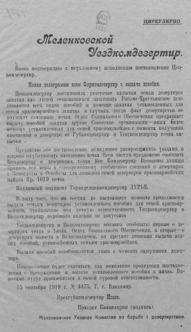 - Меленковская уездная комиссия по борьбе с дезертирством (6)