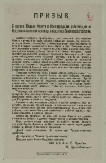 - ВЦСПС. Центральное военно-продовольственное бюро. Представители по Пензенской губернии] (1)