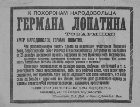 КнигаК похоронам народовольца Германа Лопатина : [листовка / Петроградский (Ленинградский) Совет]1918, дек.]Наличие: Экземпляры доступные для заказа: РНБ (Садовая)Шифр хранения: ФЛ 3/184 (1).