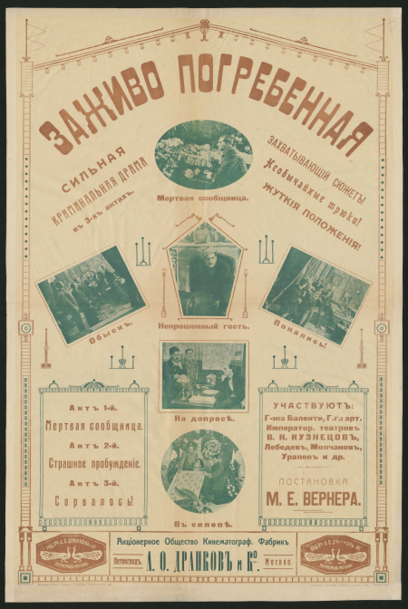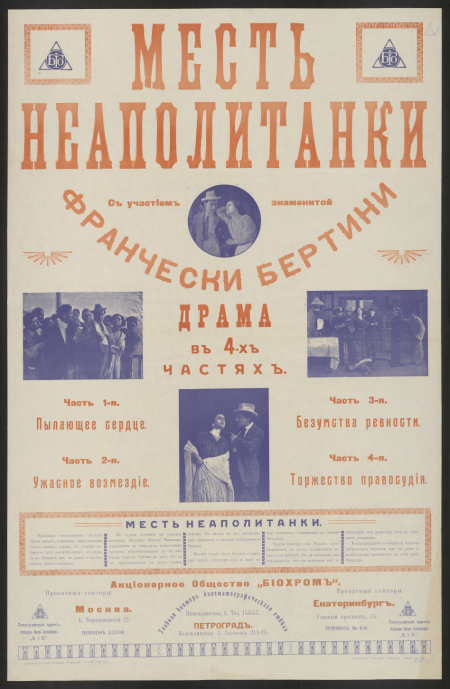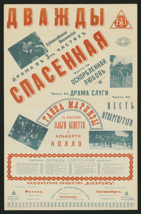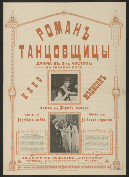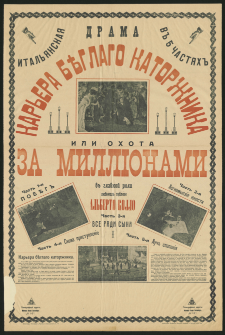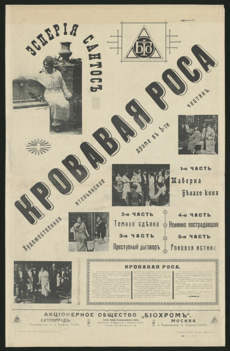 - кино-роман в 5 сериях, в 9000 метр., постановка картины обошлась 300,000 руб (1)