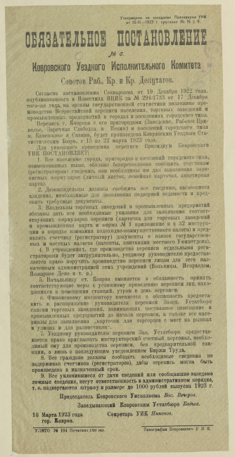 - Ковровский уездный Совет рабочих, крестьянских и красноармейских депутатов Исполнительный комитет (1)
