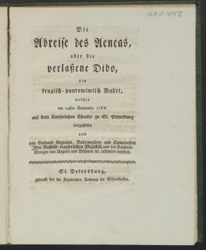 КнигаArmide : Opéra / De monsieur Marc Coltelini [!], poёte au service de S.M.I. ; Représenté sur le Théâtre Impérial de St. PétersbourgColtellini, Marco (1719-1777), Автор1776Наличие: Экземпляры доступные для заказа: РНБ (Садовая)Шифр хранения: Rossica 13.13.1.85 (1).