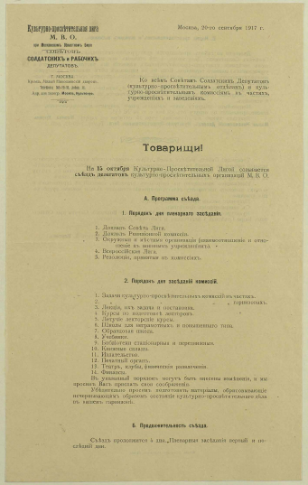 - Московский военный округ 1917, февраль-октябрь Культурно-просветительная лига 570 (1)